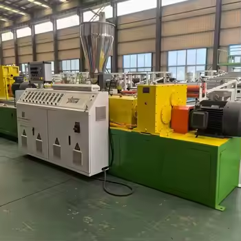 À l’intérieur de l’extrudeuse, le matériau subit un « voyage à haute température ». Chauffé progressivement par des bandes chauffantes externes et par l'immense chaleur de friction générée par les vis rotatives, le matériau fond en une masse fondue de PVC plastifiée et visqueuse. Les vis fonctionnent comme une main géante, tournant et poussant simultanément la matière fondue vers l’avant.