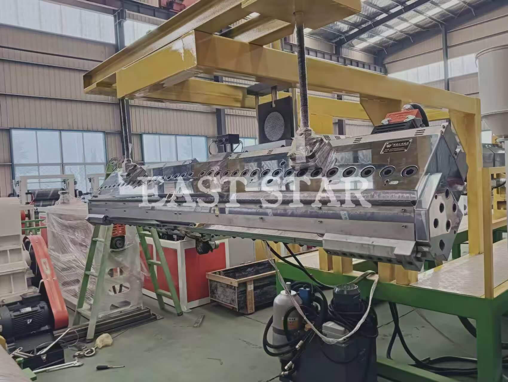 [Qingdao, Chine, 8 septembre 2025] – Qingdao EASTSTAR Plastic Machinery Co., Ltd. a récemment annoncé que son nouveau produitLigne d'extrusion de feuilles de bande de fumier entièrement automatique DQ-2400a terminé l'assemblage final et la mise en service, et est sorti avec succès de la chaîne de production. Cet équipement est conçu spécifiquement pour produire des bandes à fumier en polypropylène (PP) hautes performances d'une largeur de 2,4 mètres, marquant une nouvelle étape dans la force technologique de l'entreprise dans la fabrication d'équipements aquacoles haut de gamme.