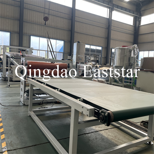 support, une machine de traction à rouleaux en caoutchouc, une cisaille et un dispositif à bande transporteuse. Extrudeuse de plaques antidérapantes en PVC Équipement, largeur du produit