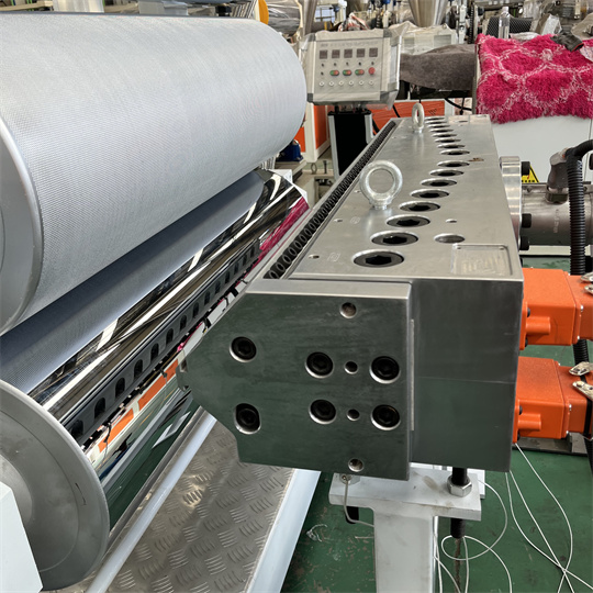 dispositif de bande transporteuse. La largeur standard du produit d'équipement d'extrudeuse de feuilles antistatiques en PVC est de 1 000 mm. L'épaisseur est de 6 mm. Équipement d'extrudeuse de feuilles antistatiques en PVC L'équipement peut produire diverses textures