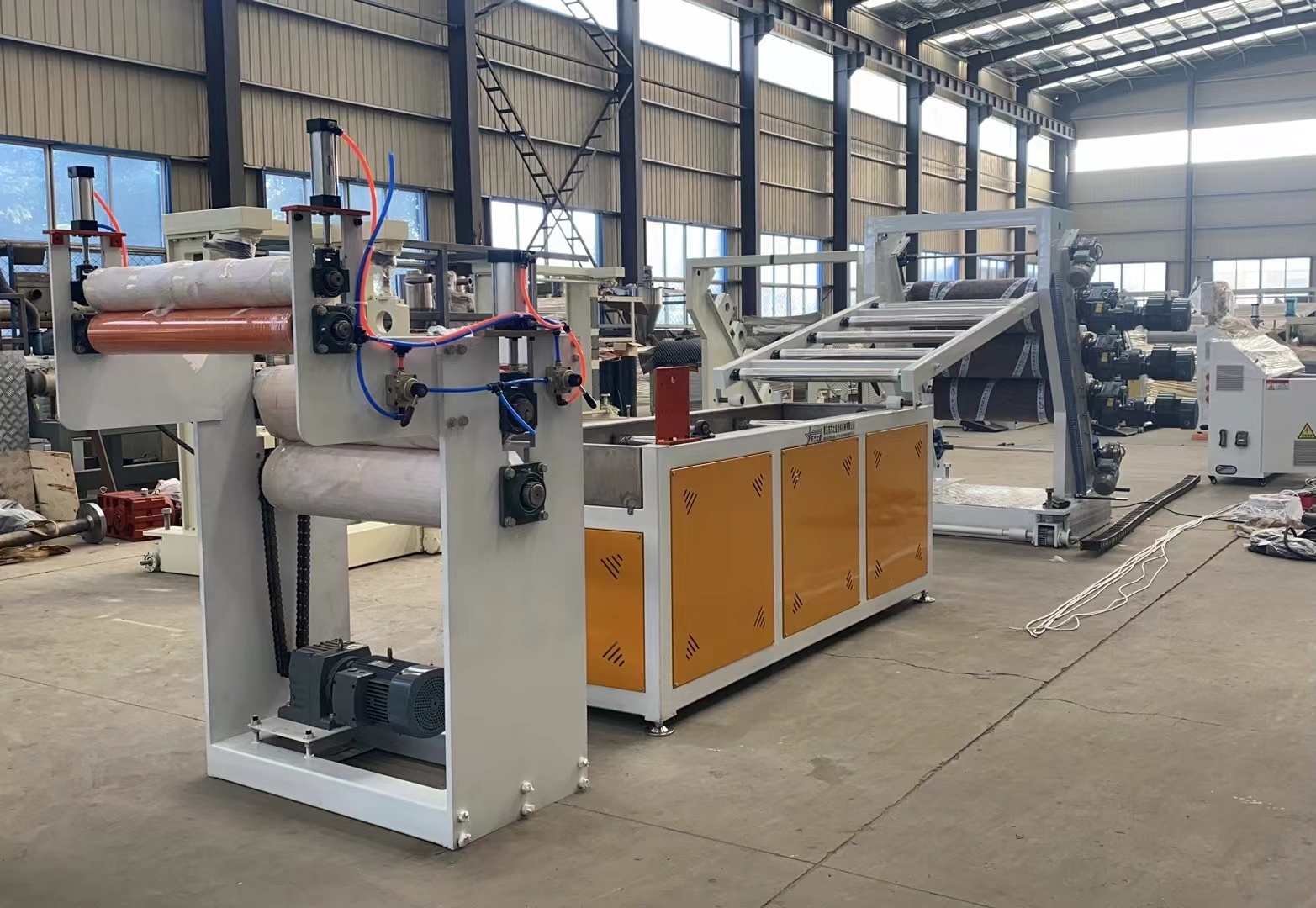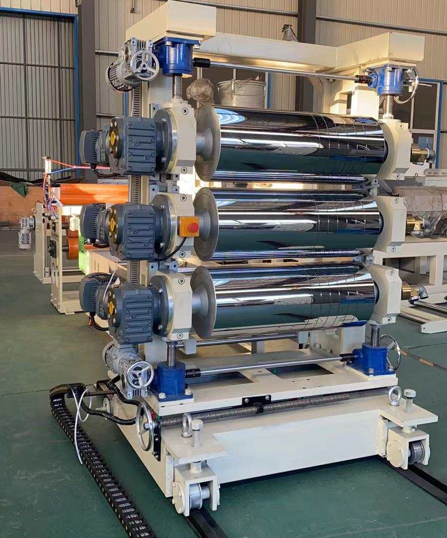 Présentation d'une ligne de production de pointe conçue pour la fabrication de lignes de production de rideaux de porte transparents en PVC. Ce système de pointe est conçu pour produire des feuilles de plastique transparentes en PVC d'une largeur allant de 200 à 600 millimètres et d'une épaisseur variant de 0,8 à 3 millimètres. La ligne de production est équipée d'une gamme impressionnante de machines, notamment un choix d'extrudeuse monovis SJ90 ou SJ-120, une filière flexible polyvalente en forme de T et l'option d'une calandre à trois rouleaux verticale ou inclinée à 45 degrés. De plus, il comprend un contrôleur de température de l'eau trois en un, un support de refroidissement en acier inoxydable avec un couteau de coupe réglable en grande largeur, une machine de traction à rouleaux en caoutchouc et un enrouleur d'arbre à expansion d'air à double position.