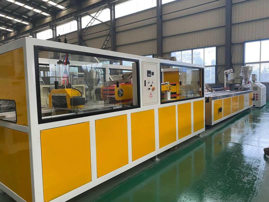 Ligne de production d'extrusion de plancher en bois-plastique PVC - La ligne de production d'extrusion de plancher en bois-plastique utilise une extrudeuse conique à double vis SJZ65/132, spécialement utilisée pour l'extrusion, la plastification et le moulage de matières premières en poudre PE + poudre de bois. Il présente les caractéristiques d'un rendement élevé, d'un bon effet plastifiant et d'une faible consommation d'énergie.