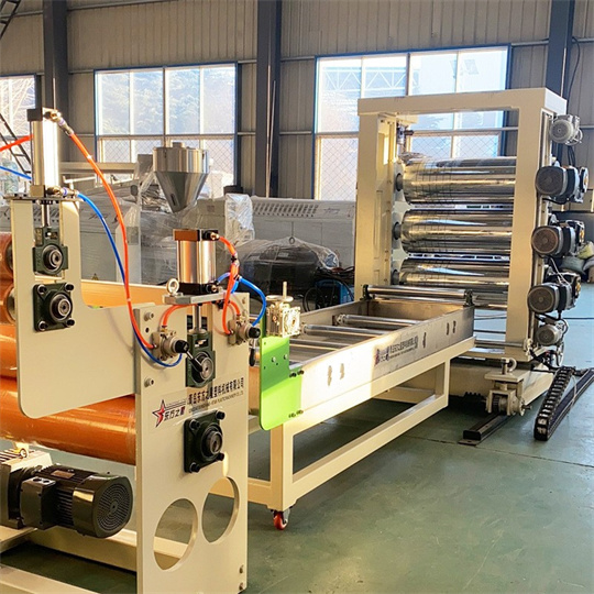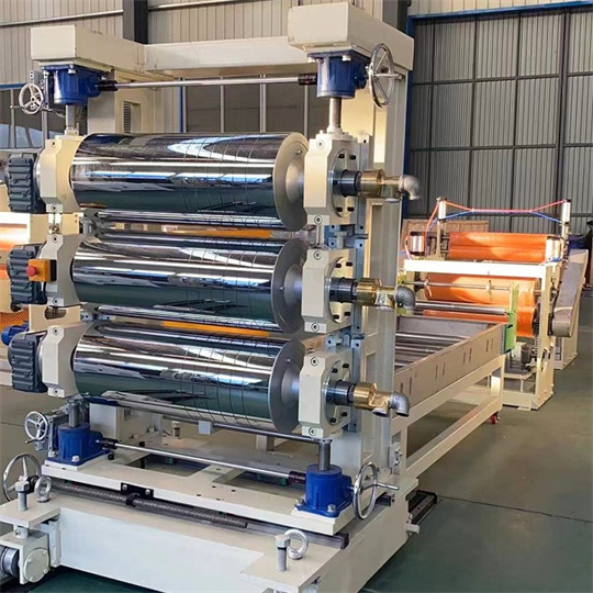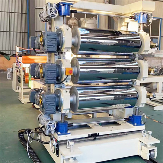 Équipement de rideau de porte en PVC souple Équipement de rideau de porte rayé en PVC souple Caractéristiques de l'équipement de rideau de porte souple en PVC, calendrier à trois rouleaux Calendrier d'équipement de rideau de porte souple en PVC : il est principalement composé de 5 parties, dont une partie rouleau super miroir, un système d'entraînement moteur, un système de réglage de l'écart, un système de commande électrique et un ventilateur. Un ensemble de calandre à trois rouleaux pour rideaux de porte souples en PVC peut produire des rideaux de porte souples transparents en PVC d'une largeur de 200 à 400 mm et d'une épaisseur de 0,5 à 5 mm. Cette machine de calandrage à trois rouleaux pour rideaux de porte souples en PVC peut produire des rideaux de porte souples de couleur brillante, mate et rayée en une seule machine. Il est facile à utiliser.