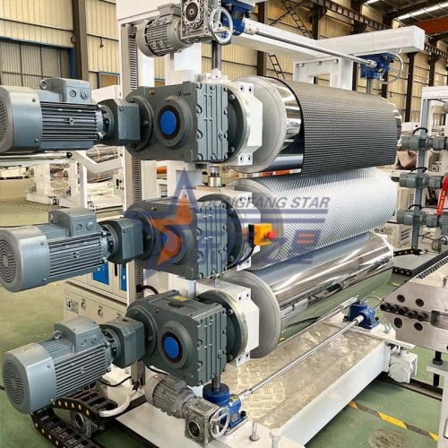 La modification des spécifications de largeur en ajustant le déflecteur du moule prend environ 1 à 2 heures. La modification des spécifications d'épaisseur en ajustant l'écart entre les trois rouleaux et les paramètres de processus prend environ 30 à 60 minutes.