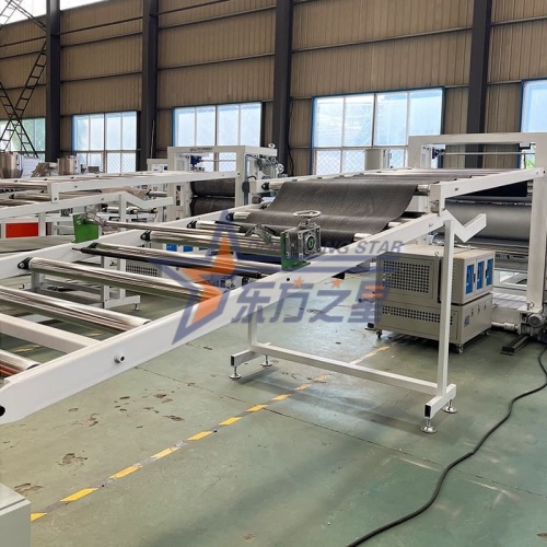 Oui. En ajoutant un dispositif de plastification, une couche de support adhésif peut être laminée au dos du matériau du tapis TPE. Nous proposons une variété d'options de laminage.