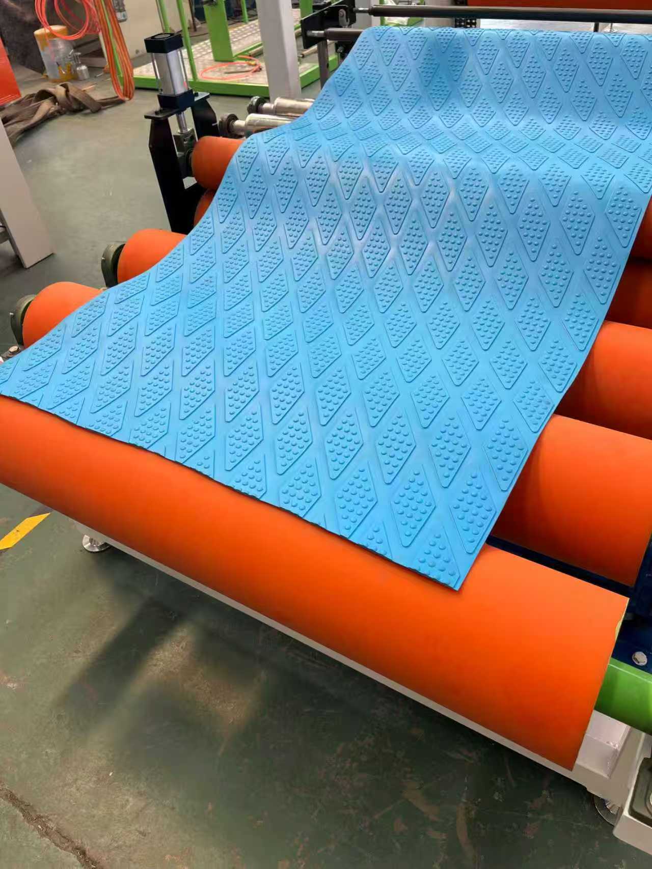 La ligne de production de tapis de sol composites à substrat textile ou TPE +, développée indépendamment par Oriental Star, est une ligne de production de pointe pour les matériaux d'intérieur automobile. Cet équipement utilise une vis PTE spécialement conçue pour une plastification uniforme. Combiné à un processus composite unique, le produit résultant présente une forte adhérence, une déformation en traction nulle et est sans formaldéhyde. Cet équipement a été adopté par de nombreux fabricants et fournisseurs nationaux et internationaux de tapis de sol de marques automobiles, et a été exporté vers des pays tels que la Corée du Sud, le Japon et l'Égypte.