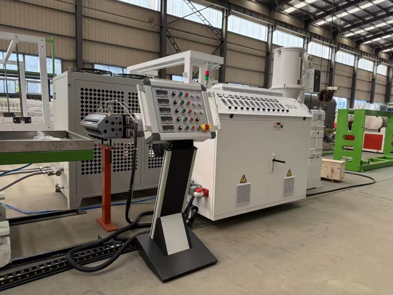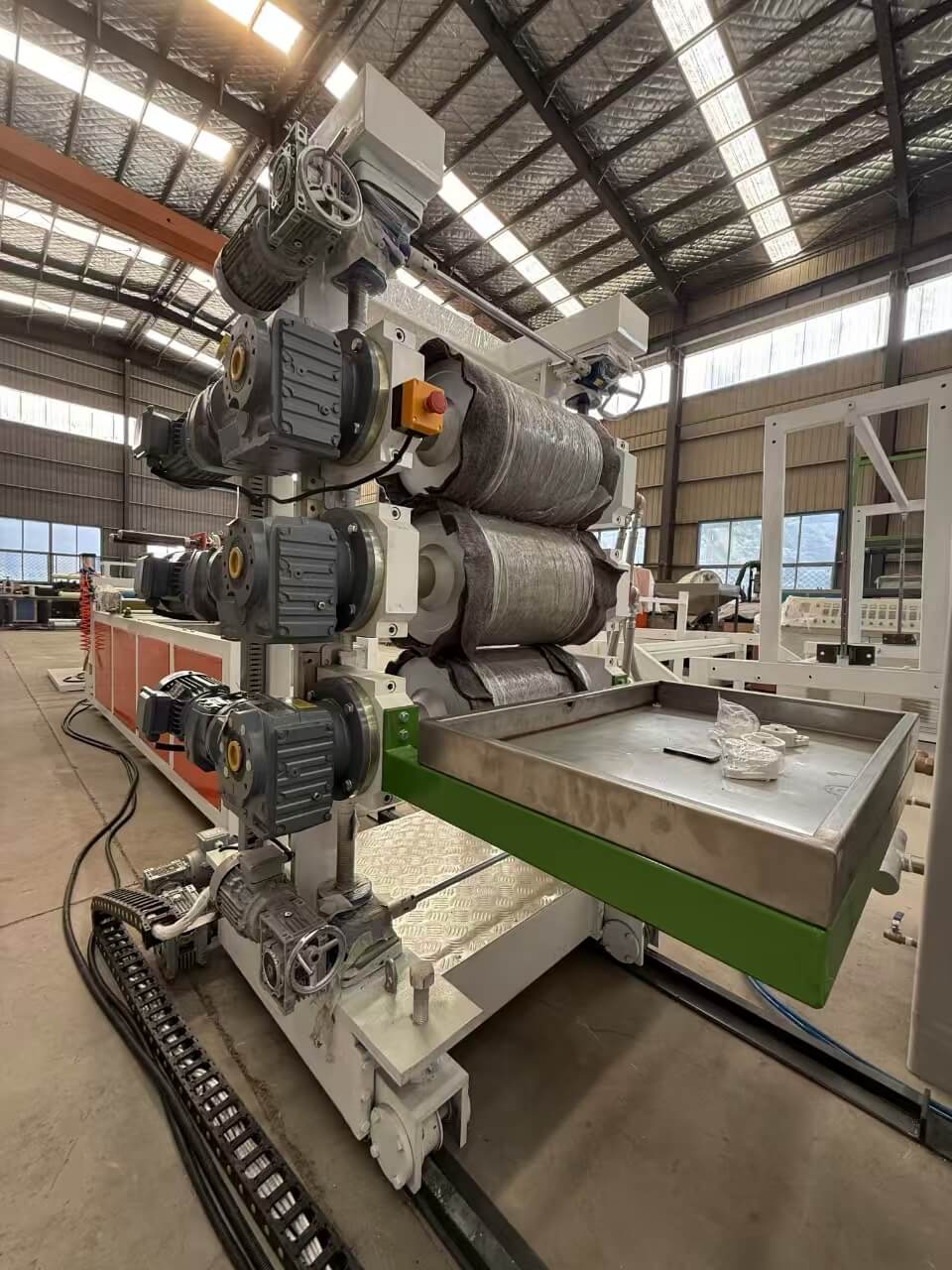 La ligne d'extrusion de feuilles larges TPU/PE/PP/PS-300 convient au traitement de granulés de TPU/PE/PP/PS ou de mélanges broyés.